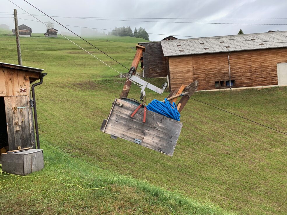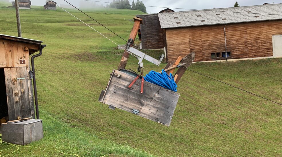Für den Transport von schweren Sachen, insbesondere Brennholz, hat es eine Transportseilbahn im Hüttli. Ihr dürft die Seilbahn unter Berücksichtigung folgender Sicherheitsregeln gerne auch benutzen: